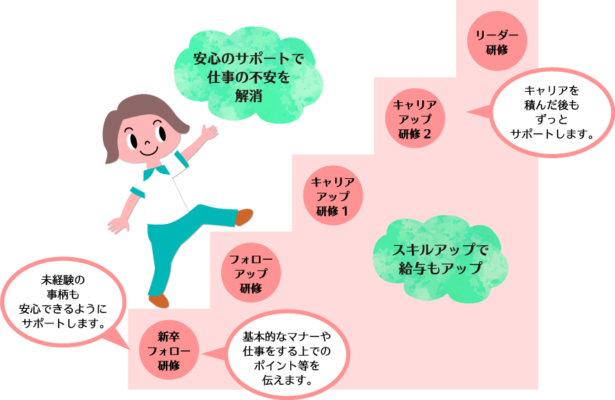 当園では、個々のスキルアップ・キャリアアップのための研修制度を取り入れています。