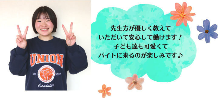 | 時間給 | 1回生 1,300円 2回生 1,400円 3回生以上 1,500円 *17:00以降は100円UP |